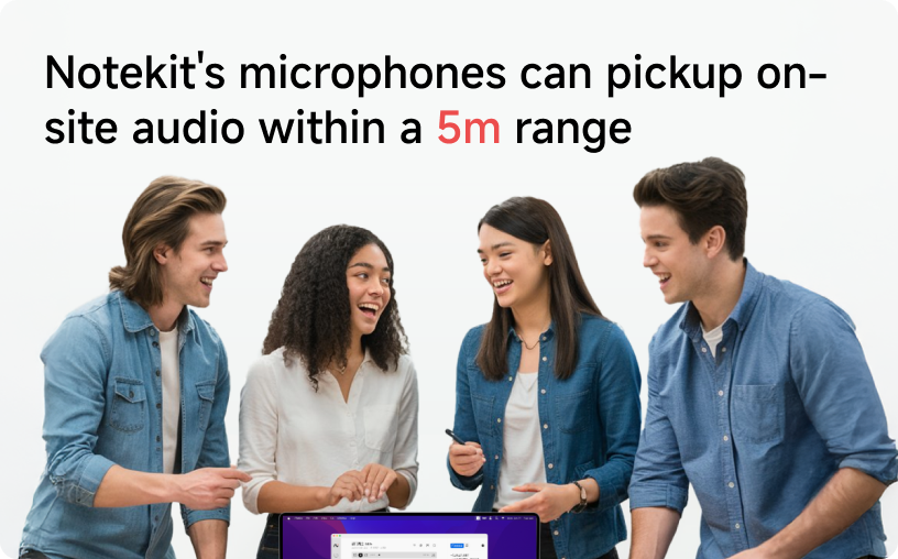 NoteKit's microphones can pickup on-site audio within a 5m range